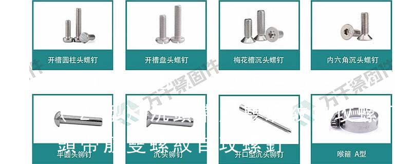 自切自攻螺釘有以下幾種型式:十字槽盤頭自切自攻螺釘,十字槽沉頭自切自攻螺釘。十字槽半沉頭自切自攻螺釘,六角頭自切自攻螺釘。3、自擠自攻螺釘(自攻鎖緊螺釘)自擠自攻螺釘的螺紋一般為機螺紋,很少采用自攻螺紋。在扳擰