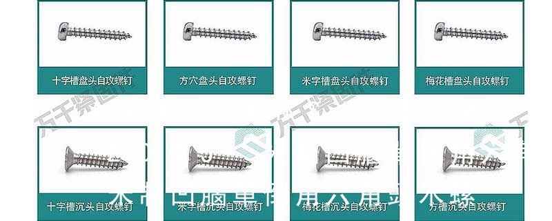 1.機螺釘 2.自攻螺釘 3.鉆尾螺釘 4.墻板釘 5.纖維板釘 6.木螺釘7.六角木螺釘 8.不脫出螺釘 9.組合螺釘 10.微型螺釘 11.家具螺釘 12.電子螺釘頭型:1.六角頭(hexagon head) 2.六角頭法蘭面(hexagon head with flange) 3.
