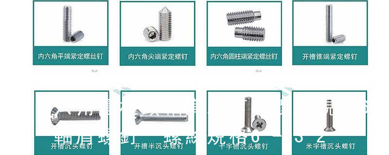 十二角螺栓、地角螺栓、膨脹螺栓、太陽能用雙段牙螺栓、內六角圓柱頭螺絲、內六角沉頭螺絲、半圓頭內六角螺絲、內六角圓柱頭軸肩螺絲、塞打螺絲、梅華槽螺絲、內六角緊定螺絲、一字緊定螺絲、方頭緊定螺絲、滾花頭螺絲、蝶 有螺紋。內六角螺絲軸肩是螺絲的一個重要部位,其需要有螺紋部分來增加摩擦力,因此是有螺紋的。內六角圓柱頭軸肩螺釘也叫內六角螺絲,也叫內六角螺栓。其頭部是內六角頭的。