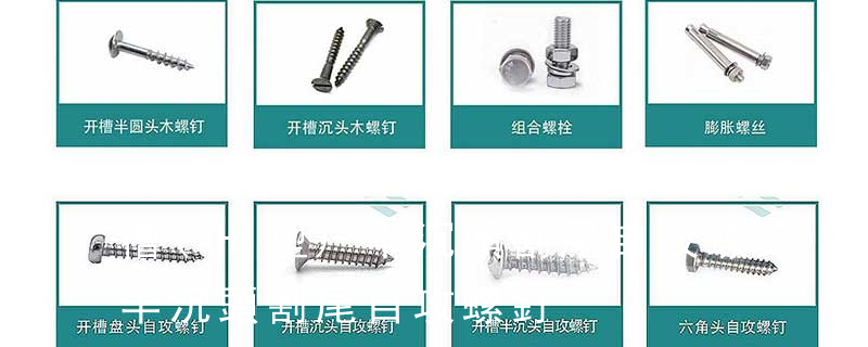 (鐵板牙自攻螺絲) B-2: Plastic Tapping Screw. (塑膠用,自攻螺絲) C: Wooden Screw : 木工螺絲 D: Drywall Screw :水泥墻螺絲 E: Self Drilling Screws鉆尾螺絲(不銹鋼鉆尾螺絲,復合材料鉆尾螺絲) F:膨脹螺絲,四片膨脹螺絲又